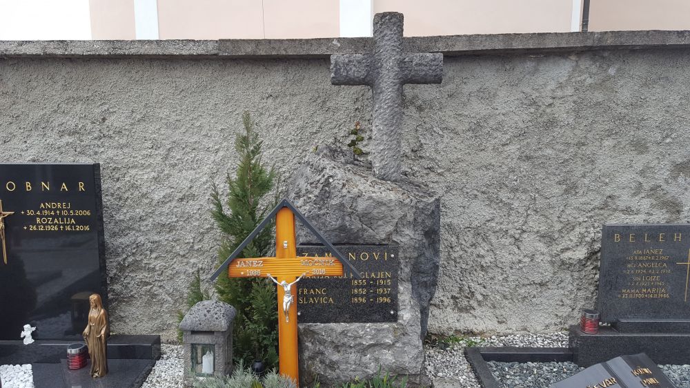 levo od vhoda ob cerkvi, približno 10. grob. Približni GPS koordinati groba sta 46.252788, 14.487638.