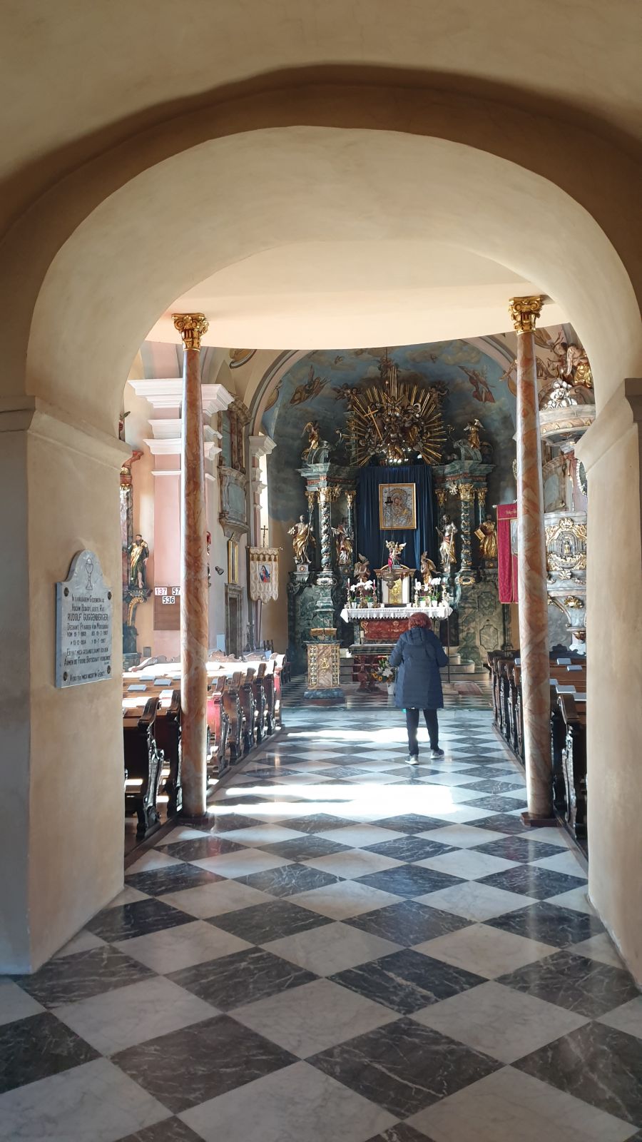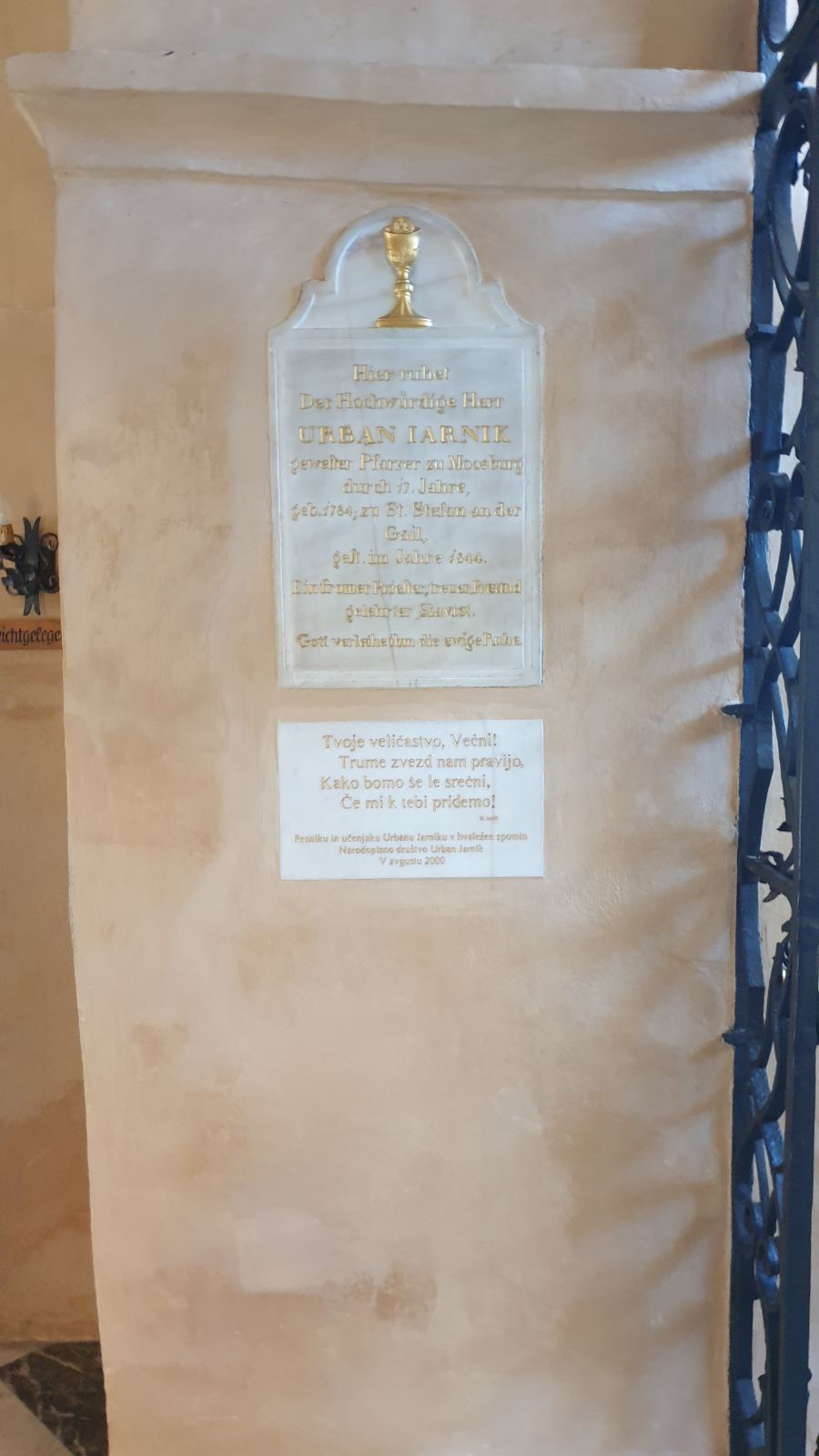 v farni cerkvi v Možberku, takoj po vhodu na desnem zidu.