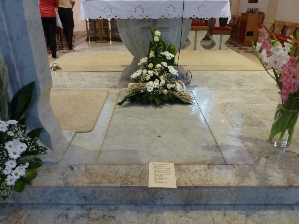 Grob je pod oltarjem (pod ploščo na sliki) in ni dostopen