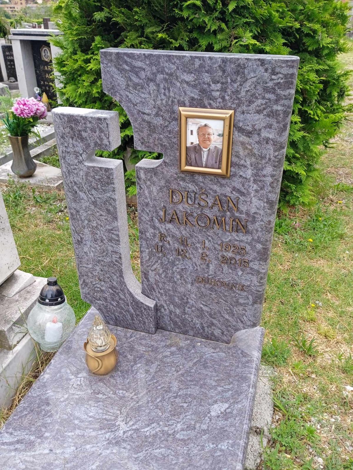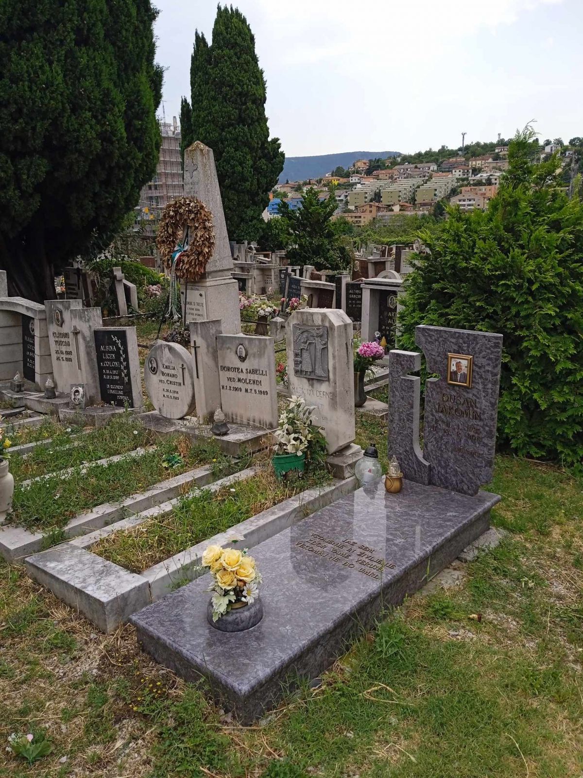 Prvi grob levo ob glavni poti v zgornjem delu pokopališča 45.623118, 13.786816