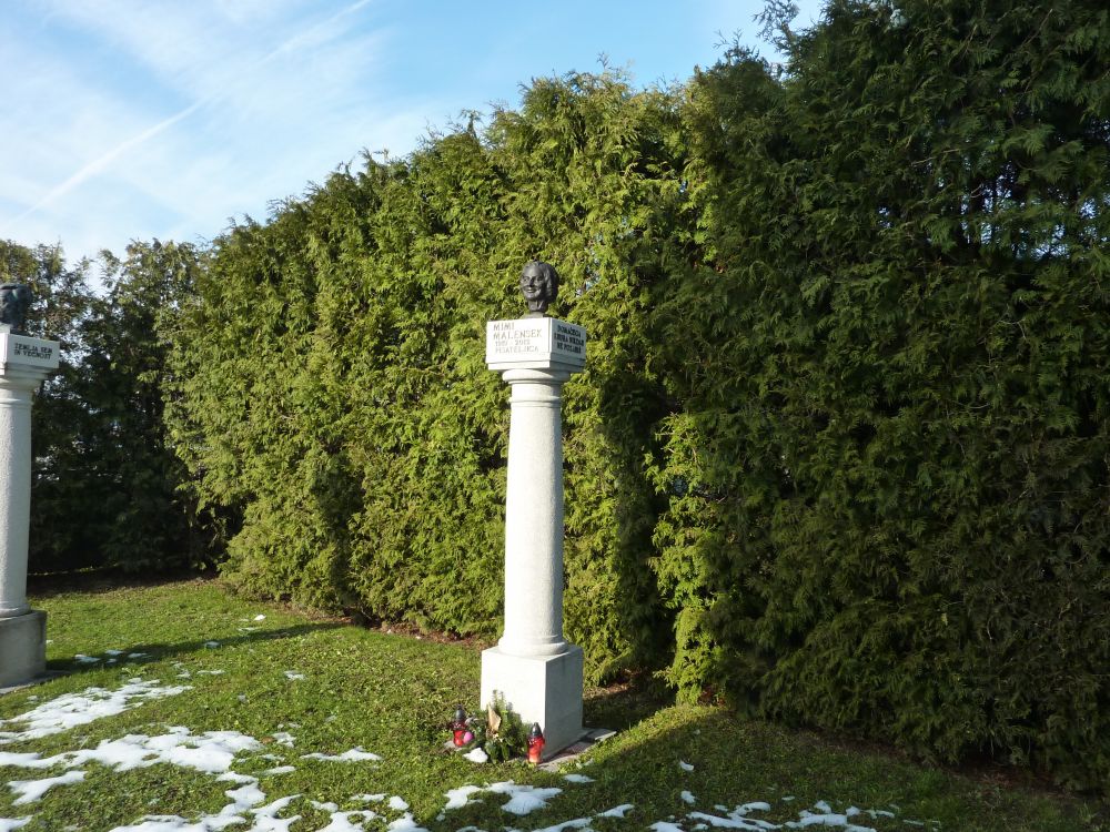 Spomenik s kipom (prvi dve sliki) je pred vhodom na pokopališče